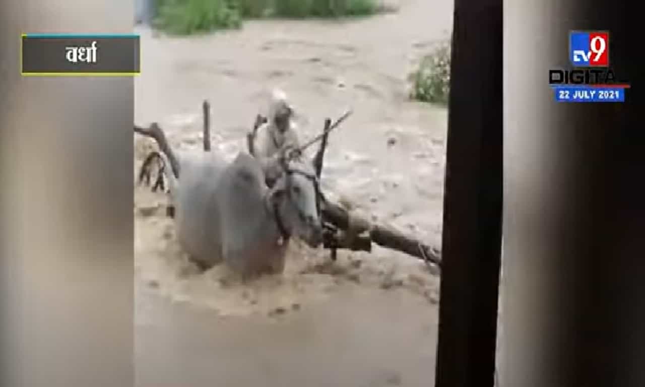 वर्धा : जिल्ह्यातील समुद्रपूर तालुक्यात जोरदार पावसामुळं नाल्यांना पूर आला आहे. या पुरामुळे तास या गावात एक घटना घडली आहे. या गावाजवळ असलेल्या नाल्यातील पुरातून बैलगाडी घेऊन जाण्याच्या प्रयत्न एका शेतकऱ्याच्या अंगलट आला आहे. नाला पार करण्याच्या प्रयत्नात बैलगाडीसह हा शेतकरी वाहून गेला. या घटनेचा व्हिडीओदेखील पुढं आला असून तो मोठ्या प्रमाणात व्हायरल होतोय. (wardha farmer swept away in flood due to heavy rain)