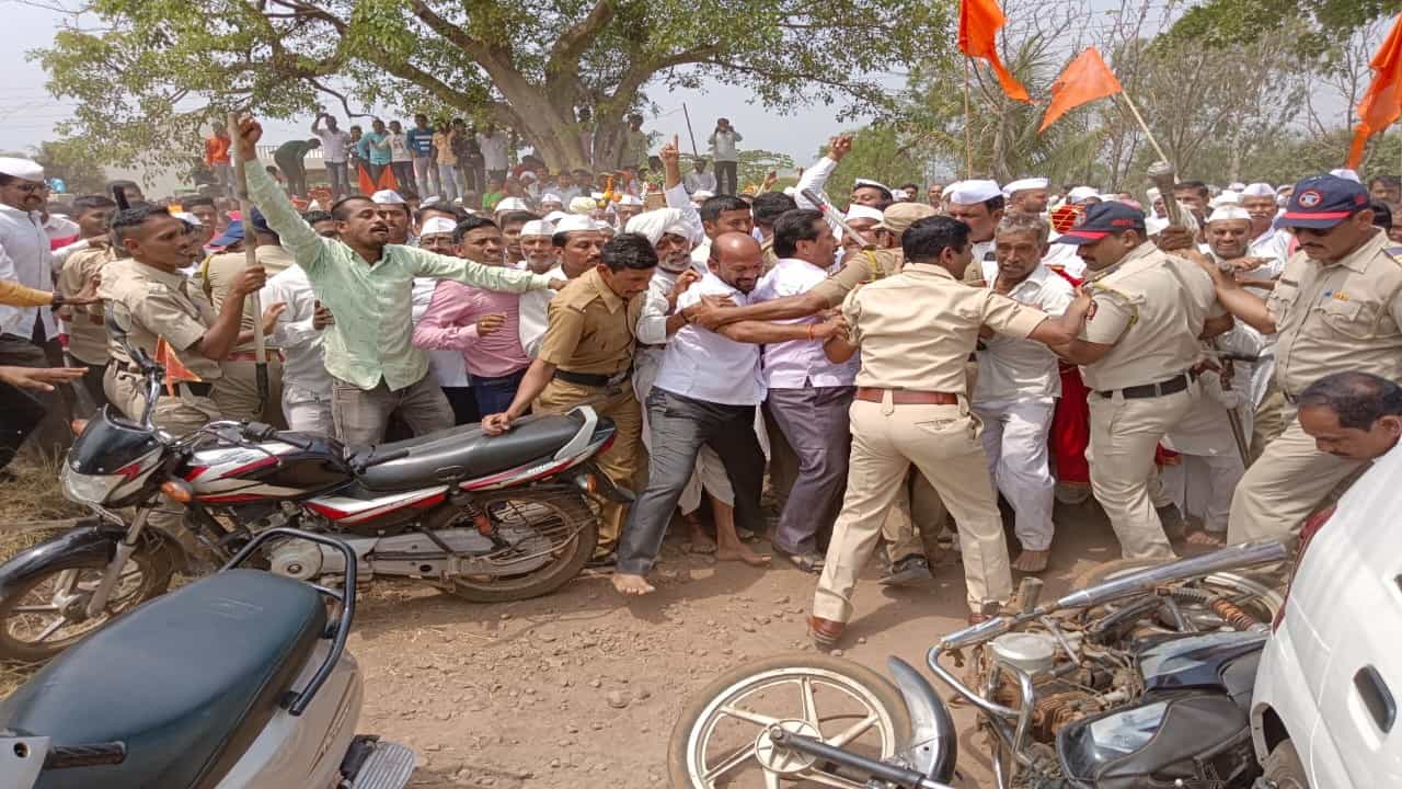 दरम्यान वाद चिरघळल्यामुळे पोलीस मध्यस्थी करण्यासाठी आले. मात्र यावेळी पोलीस आणि वारकऱ्यांमध्ये बाचाबाची झाली. प्रकरण थेट धक्काबुक्कीपर्यंत पोहोचले. वारकरी आणि पोलिसांमध्ये धक्काबुक्की झाली. त्यानंत पोलिसांनी मध्यस्थी करत हे प्रकरण मिटवले मात्र गावात सध्या तणावपूर्ण शांतता असल्याचे पहायला मिळत आहे.