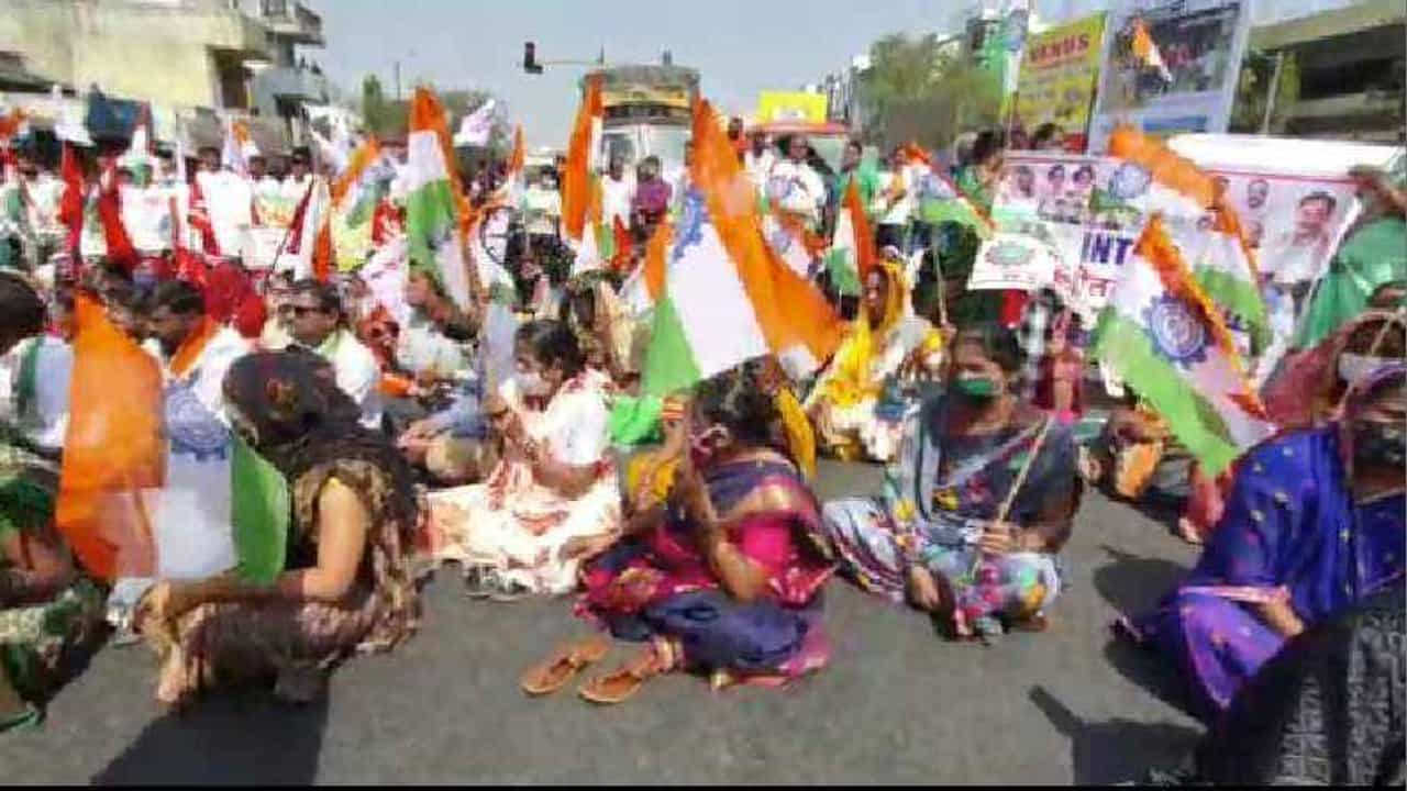 शेतकरी आंदोलनाला पाठिंबा देण्यासाठी राज्यात चक्काजाम, शेतकरी संघटनांसह राजकीय पक्षांचाही सहभाग(Protest across the state for support farmer)