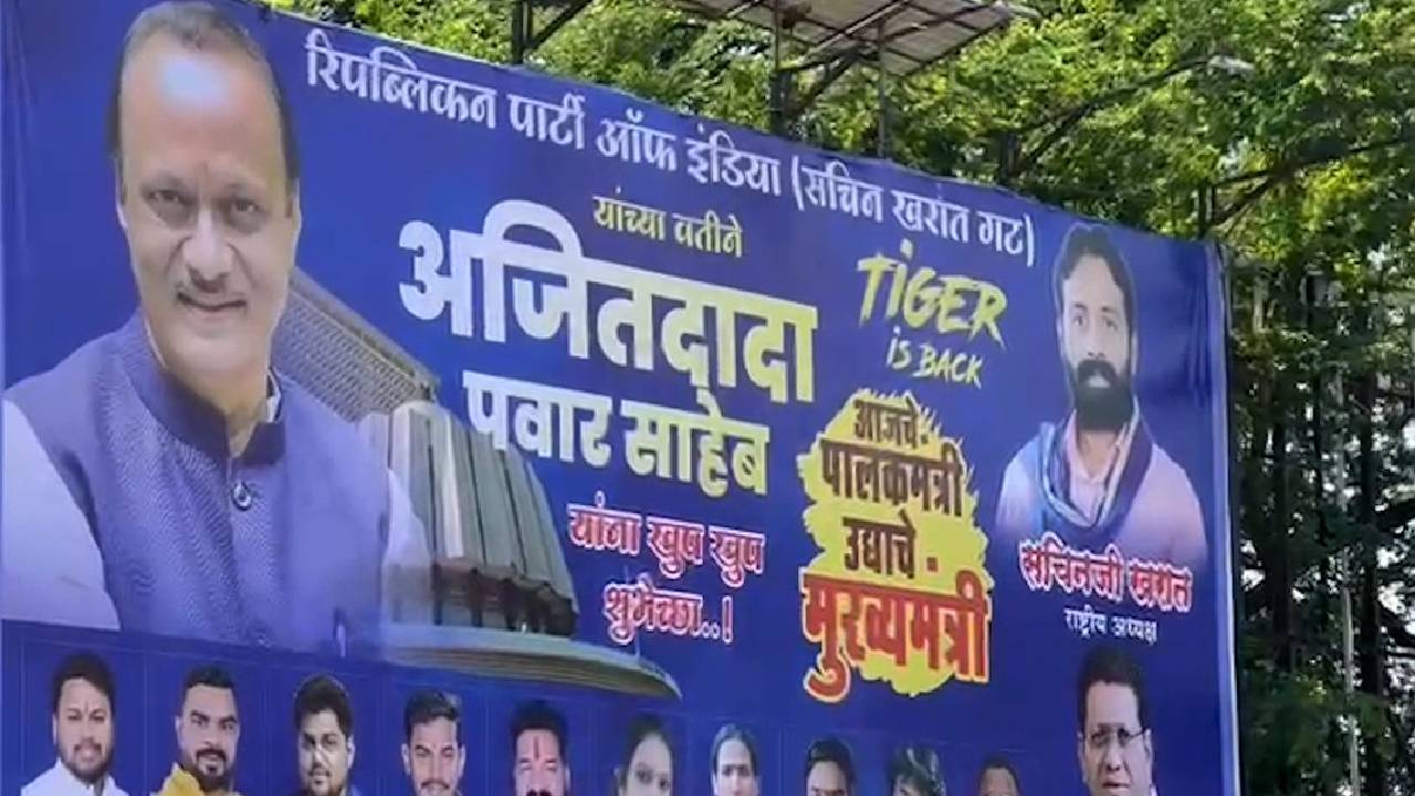 “टायगर इज बॅक….असे बॅनर आता पुण्यात झळकले आहेत. विद्यामान उपमुख्यमंत्री अजित पवार यांच्यासंदर्भात हे बॅनर आहेत. “आजचे पालकमंत्री उद्याचे मुख्यमंत्री”, अशा आशयाचे पोस्टर पुणे शहरात रिपब्लिकन पार्टी ऑफ इंडियाच्या खरात गटाकडून लावण्यात आले आहे. पक्षाचे राष्ट्रीय अध्यक्ष सचिन खरात यांनी हे बॅनर लावले आहे. त्यानंतर या बॅनरची चांगलीच चर्चा रंगली आहे.