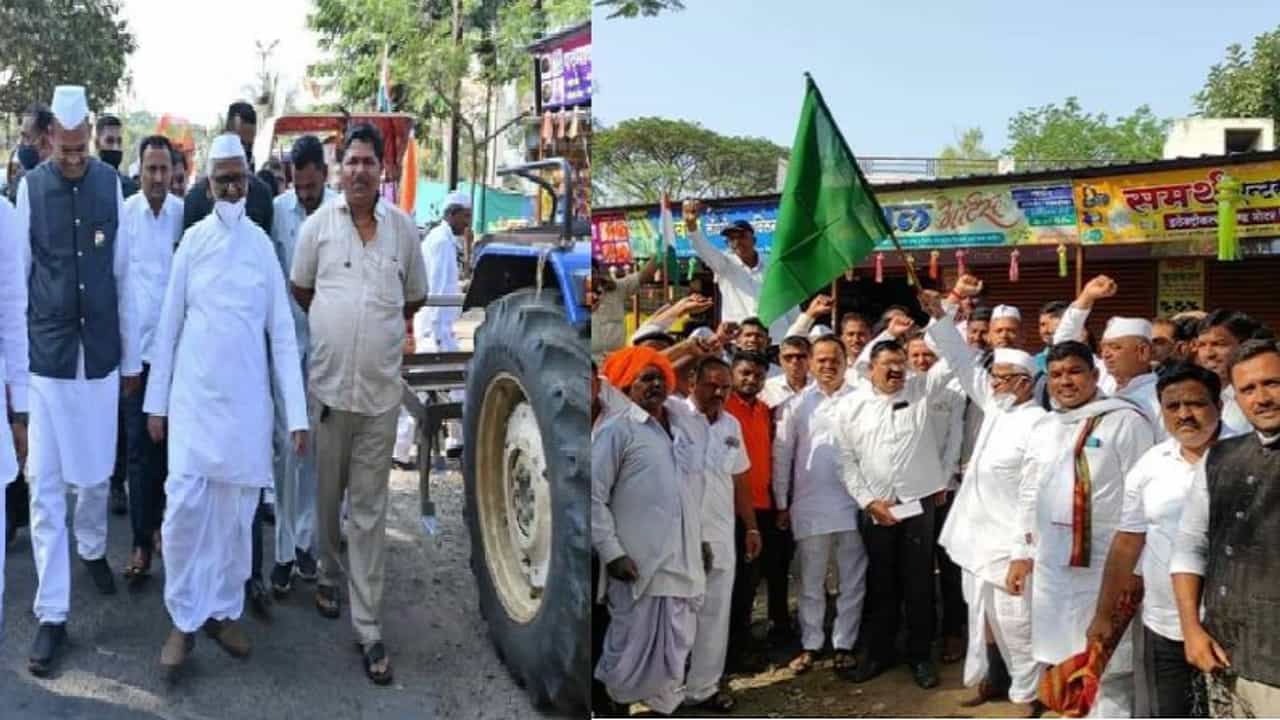 दिल्लीतल्या शेतकऱ्यांना पाठिंबा देण्यासाठी राळेगणसिद्धीत ट्रॅक्टर रॅली, अण्णा हजारेंनी दाखवला हिरवा झेंडा