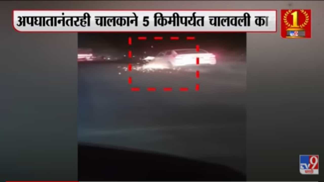 अपघातग्रस्त कार वेगानं चालविल्याने त्या कारचा टायर फुटून रस्त्याला घासतते गेली यावेळी त्यातून मोठ्याप्रमाणात ठिणग्या बाहेर पडत होत्या. या घटनेचा व्हिडीओ सोशल मीडियावर व्हायरल झाला आहे. अपघातस्थळापासून पळ काढण्यासाठी कार चालकाने हे कृत्य समोर आले आहे.