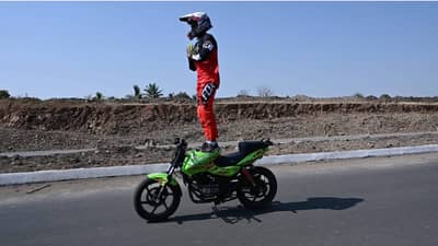 बारामती : जागतिक सूर्यनमस्कार दिनानिमित्त (World Surya Namaskar) 14 जानेवारीला चालू मोटारसायकलवर 4 मिनिटे 20 सेकंदामध्ये सूर्यनमस्कार घातले म्हणून रोहित दिलीप शिंदे यांची इंडिया आणि एशिया बुक रेकॉर्डमध्ये नोंद झाली आहे. मोटार सायकलवर 10 वेळा सूर्यनमस्कार काढणारा जगातील पहिला मोटार सायकल रायडर (Motorcycle Rider) आहे. तो वयाच्या 16 वर्षापासून मोटार सायकल रेस करीत आलेला आहे. गेल्या 12 वर्षापासून मोटार सायकल रायडिंग करून आतापर्यंत 300 हून अधिक मोटार सायकल रायडिंग शो भारतात केले आहेत. मोटार सायकल रायडिंग करणे हा स्वत:पुरता मर्यादित राहिलेला नाही. त्याने अनेक इच्छुक युवकांना मोटार सायकल रायडिंगचे प्रशिक्षण (Riding Training) देण्यास सुरू केले आहे.