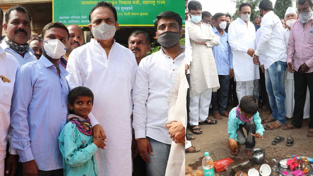 सांगली: सायेब… मी पण फोडू का नारळ?… फोडू नारळ… असा हट्ट एका 6 वर्षाच्या लहानग्या मुलाने धरला. लहानग्या संचितचे निरागस बोल ऐकून जयंतराव पाटलांनी लागलीच त्याची इच्छा पूर्ण केली. संचितच्या हातात नारळ दिला आणि सांगितलं फोड नारळ. त्यामुळे संचितने नारळ फोडला आणि त्याची नारळ फोडून कार्यक्रमाचा शुभारंभ करण्याची इच्छाही पूर्ण झाली. (jayant patil inagurated development works in sangli)