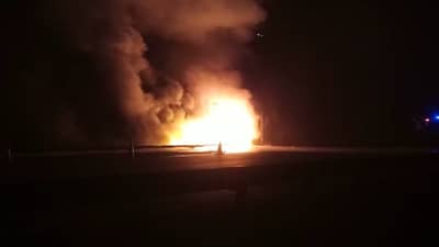 एक्सप्रेस-वेवर रात्रीच्या सुमारास आगीच्या ज्वाळा आणि धुरांचे लोट उठले होते. या अपघातामध्ये दोन्ही वाहनातील दोघे जण जखमी झाले आहेत. जखमींना उपचारासाठी रुग्णालयात दाखल करण्यात आले आहे. आग अटोक्यात आली मात्र अद्याप विझलेली नाही.