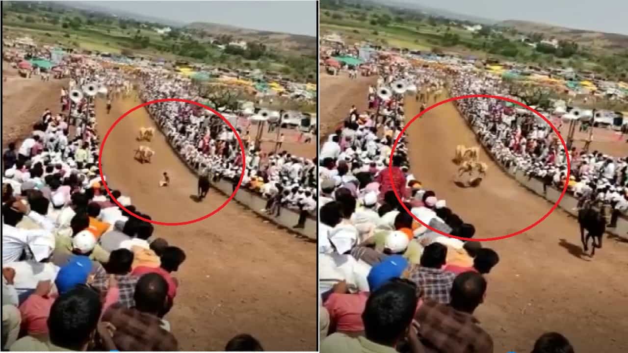 Bullock Cart Race VIDEO | वेगवान बैल जोडीसमोर मालक पडला, पायाखाली तुडवला जाणार तोच…