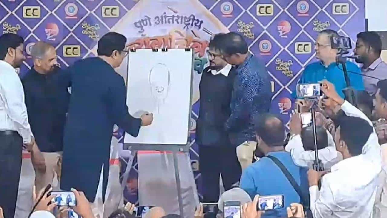 बालगंधर्वमध्ये आंतरराष्ट्रीय व्यंगचित्रकार महोत्सवाचं आयोजन करण्यात आलं आहे. या महोत्सवाचं मनसे अध्यक्ष राज ठाकरे यांच्या हस्ते उद्घाटन करण्यात आलं. यावेळी राज ठाकरे यांना एक व्यंगचित्र काढण्याची गळ घालण्यात आली. त्यामुळे व्यंगचित्रकार आणि आयोजकांच्या शब्दाला मान देत राज ठाकरे यांनी हातात कुंचला घेतला. राज ठाकरे यांनी बऱ्याच महिन्यानंतर सार्वजनिक कार्यक्रमात हातात कुंचला घेतल्याने ते कुणाचे चित्र काढतात याकडे सर्वांचं लक्ष लागलं होतं. राज ठाकरे हे लता मंगेशकर, बाबासाहेब पुरंदरे, बाळासाहेब ठाकरे किंवा पंतप्रधा नरेंद्र मोदी यांच्यापैकी एकाचं व्यंगचित्र काढतील असं प्रत्येकाला वाटत होतं.