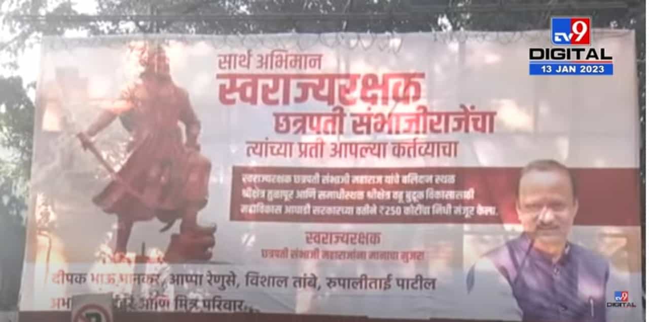 पुण्यात बॅनर लावले गेले आहे. त्या बॅनरवर अजित पवार यांचा फोटो आहे. त्यात संभाजी महाराज हे स्वराज्यरक्षक असल्याचे म्हटले आहे. त्यामुळे अजित पवार आणि राष्ट्रवादी आपल्या भूमिकेवर ठाम असल्याचे चित्र आहे. या सर्व प्रकरणावरुन पुन्हा वाद निर्माण होण्याची शक्यता आहे.