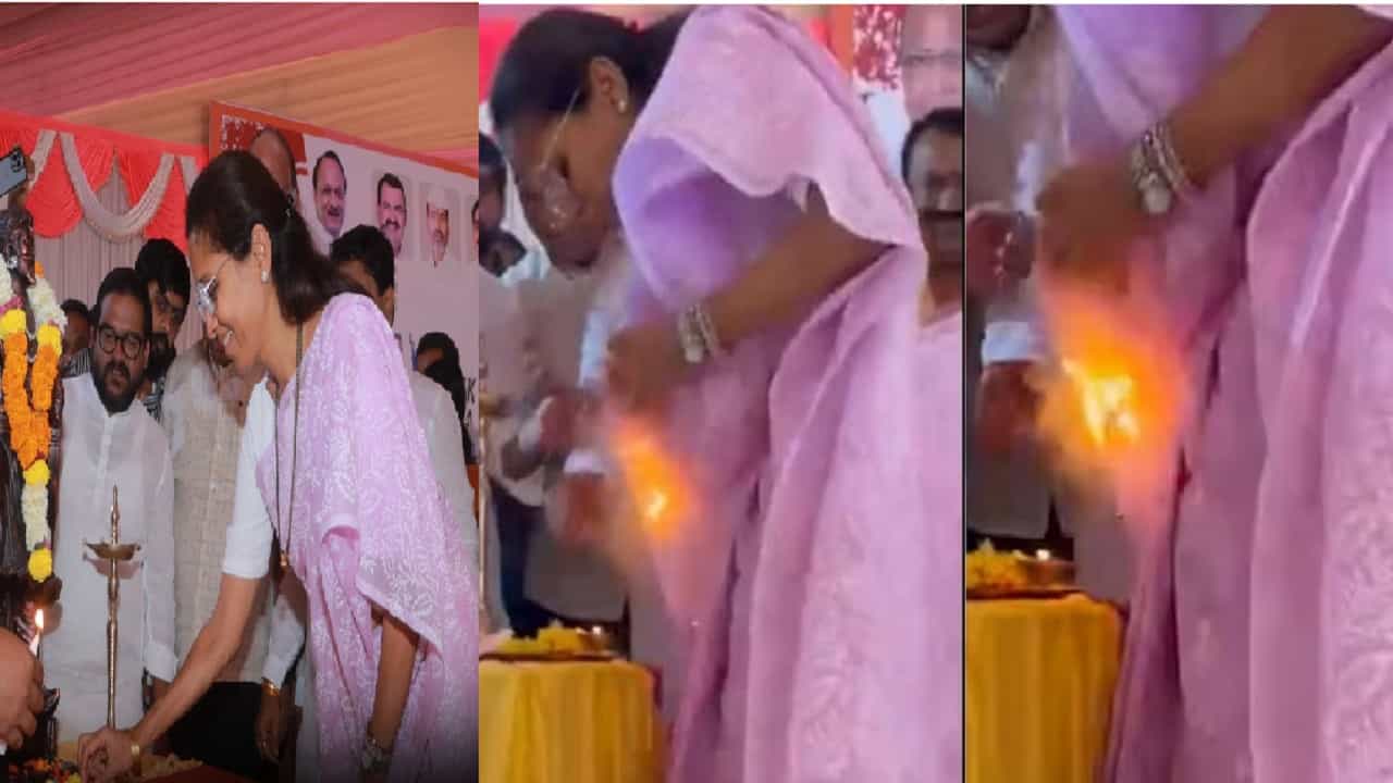 शिवाजी महाराजांच्या पुतळ्याला हार घालत असताना सुप्रिया सुळे यांच्या साडीचा पदर त्यांच्या नकळत खाली आला. त्यामुळे साडीने लगेच पेट घेतला.
