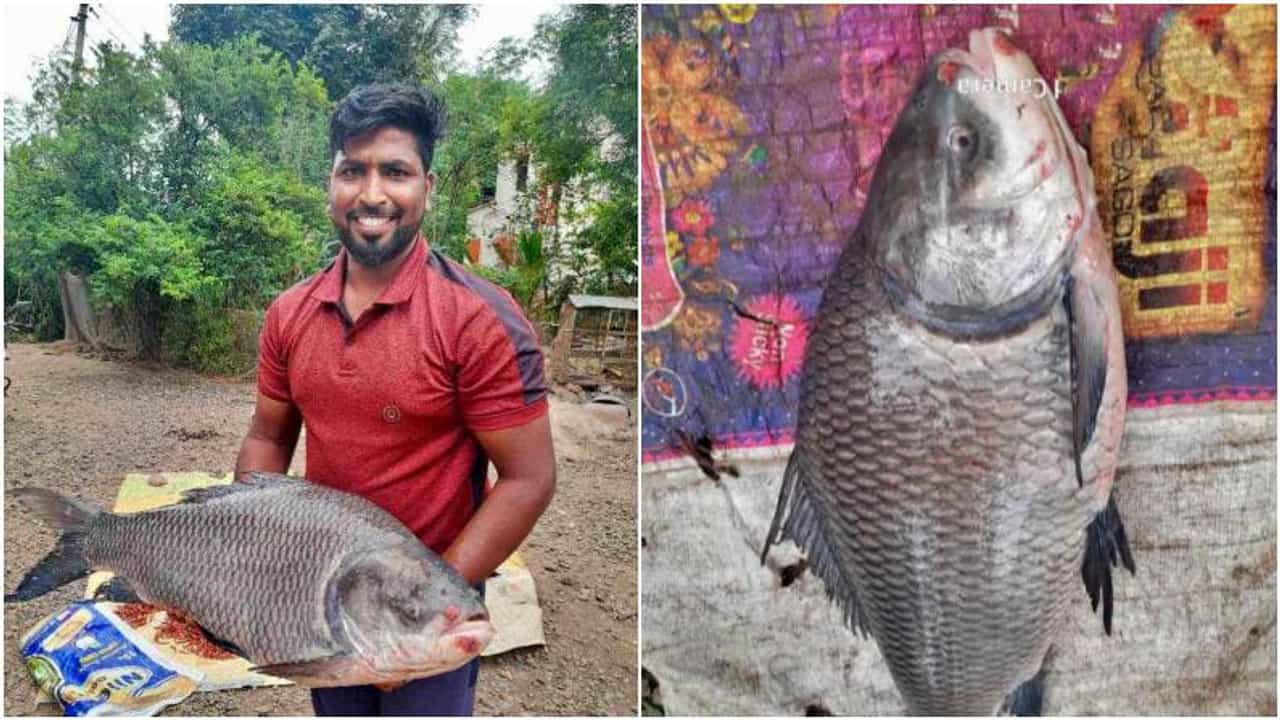 पुण्यातील दौंडच्या भिमा नदीत 20 किलोचा कटला मासा, फोटो पाहून तुम्हीही अवाक व्हाल