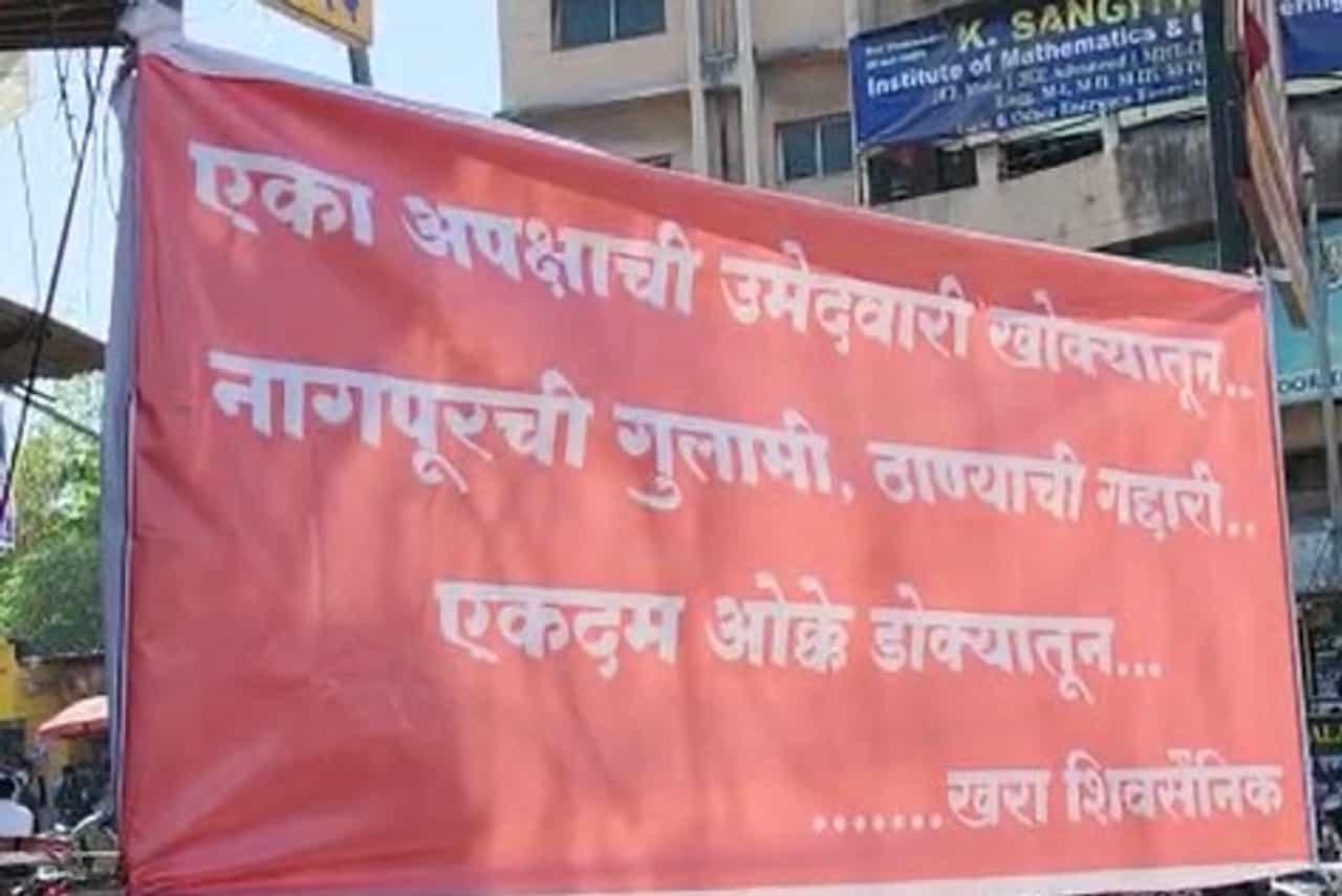 एका अपक्षाची उमेदवारी खोक्यातून…नागपूरची गुलामी, ठाण्याची गद्दारी, एकदेव ओके डोक्यातून…खरा शिवसैनिक असे या बॅनरमध्ये म्हटले आहे.