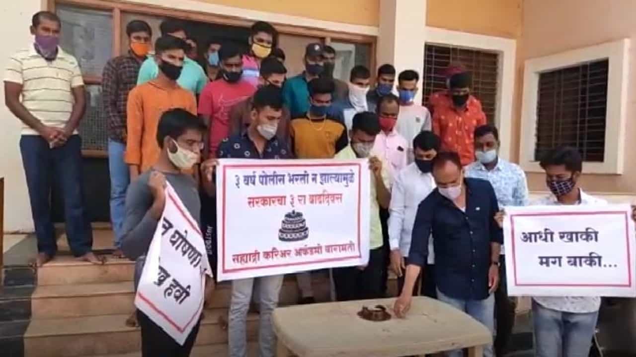 गेली 3 वर्ष पोलीस भरतीचा प्रश्न प्रलंबित आहे. मागणी करुनही भरती होत नसल्यामुळे बारामतीत सरकारचा केक कापून निषेध करण्यात आला. | Police recruitment Question pending