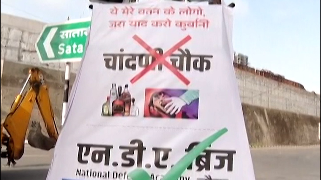 पुणे येथील चांदणी चौक परिसरात दारूच्या, बिअरच्या बॉटल लटकावून आंदोलन सुरु आहे. प्रतिकात्मक सह्यांची मोहिमही घेतली जात आहे. चेंज इंडिया फाऊंडेशनकडून हे आंदोलन केले जात आहे. चांदणी चौकाला एनडीए ब्रिज नाव द्या, अशी मागणी आंदोलन कर्त्यांनी केली आहे. बदनाम असणाऱ्या चांदणी ऐवजी एनडीए ब्रिज म्हणा, अशी मागणी केली आहे.