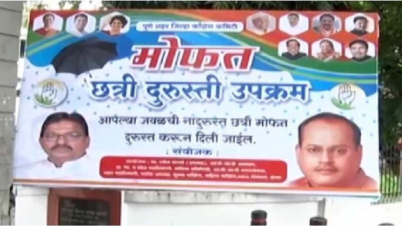 पुणे : पुणे तिथे काय उणे! याचा प्रत्यय पुणेकर वारंवार देत असतात. पुण्याच्या या लौकिकाला साजेसा उपक्रम काँग्रेसने शहरात राबवला आहे. नादुरुस्त छत्र्या मोफत दुरुस्त करण्याची मोहीम काँग्रेसने हाती घेतली आहे. पुणे शहरात अनेक ठिकाणी याची पोस्टर्स लक्ष वेधून घेत आहेत. त्याहीपेक्षा सोशल मीडियावर व्हायरल झालेले हे फोटो नेटिझन्ससाठी चर्चेचा विषय ठरत आहेत. (Pune Congress Posters of Free Umbrella repairing ahead of Monsoon Rain)