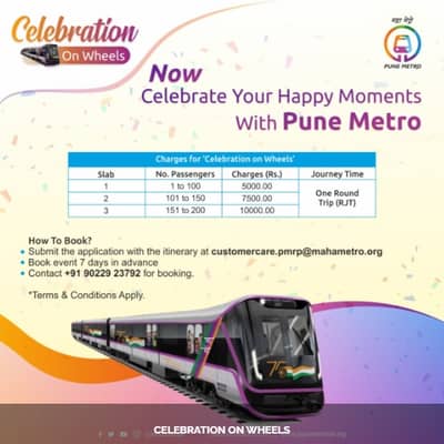 पुणे मेट्रोने आपल्या वेबसाईटवर आणि सोशल मीडियावर आनंदाच्या क्षणासाठी मेट्रोचे पॅकेज दिले आहे. वाढदिवस, लग्नाचा वाढदिवस, गेट-टुगेदर किंवा इतर सेलिब्रेशन आता नागरिकांना मेट्रोमध्ये सेलिब्रेट करता येणार आहेत. शंभर जणांसाठी पाच हजार रुपये शुल्क घेतले जाणार आहे. शंभर ते दीडशे प्रवाशांसाठी ७ हजार ५०० ते दीडशे ते २०० जणांसाठी १० हजार रुपये शुल्क आकारले जाणार आहे. या जाहिरातीवरुन पुणेकर चिडले आहे. मेट्रो ही प्रवाशांसाठी आहे, तो नफा कमवण्याचा उद्योग नाही, असे म्हटले आहे.