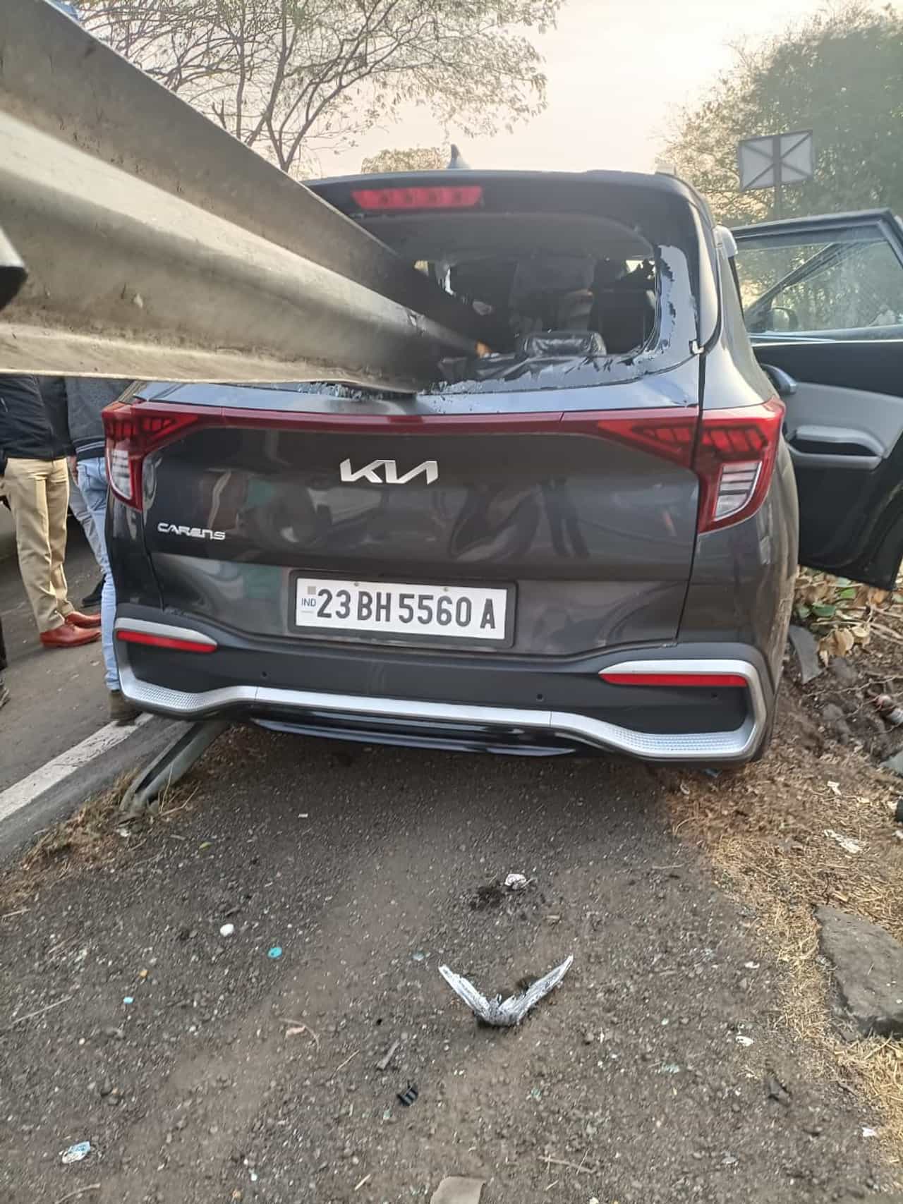 डिव्हाईडरचा अख्खा रॉड कारच्या बरोबरमधून घुसला. अपघातानंतरचे हे फोटो पाहिल्यावर गाडीतील कोणी प्रवासी बचावला की नाही? असा प्रश्न पडतो. पण सुदैवाने तीन प्रवाश्यांपैकी दोन जणांना काहीच झाले नाही. एका प्रवाश्याला गंभीर दुखापत झाली. त्याला तातडीनं रुग्णालयात दाखल करण्यात आलं आहे.