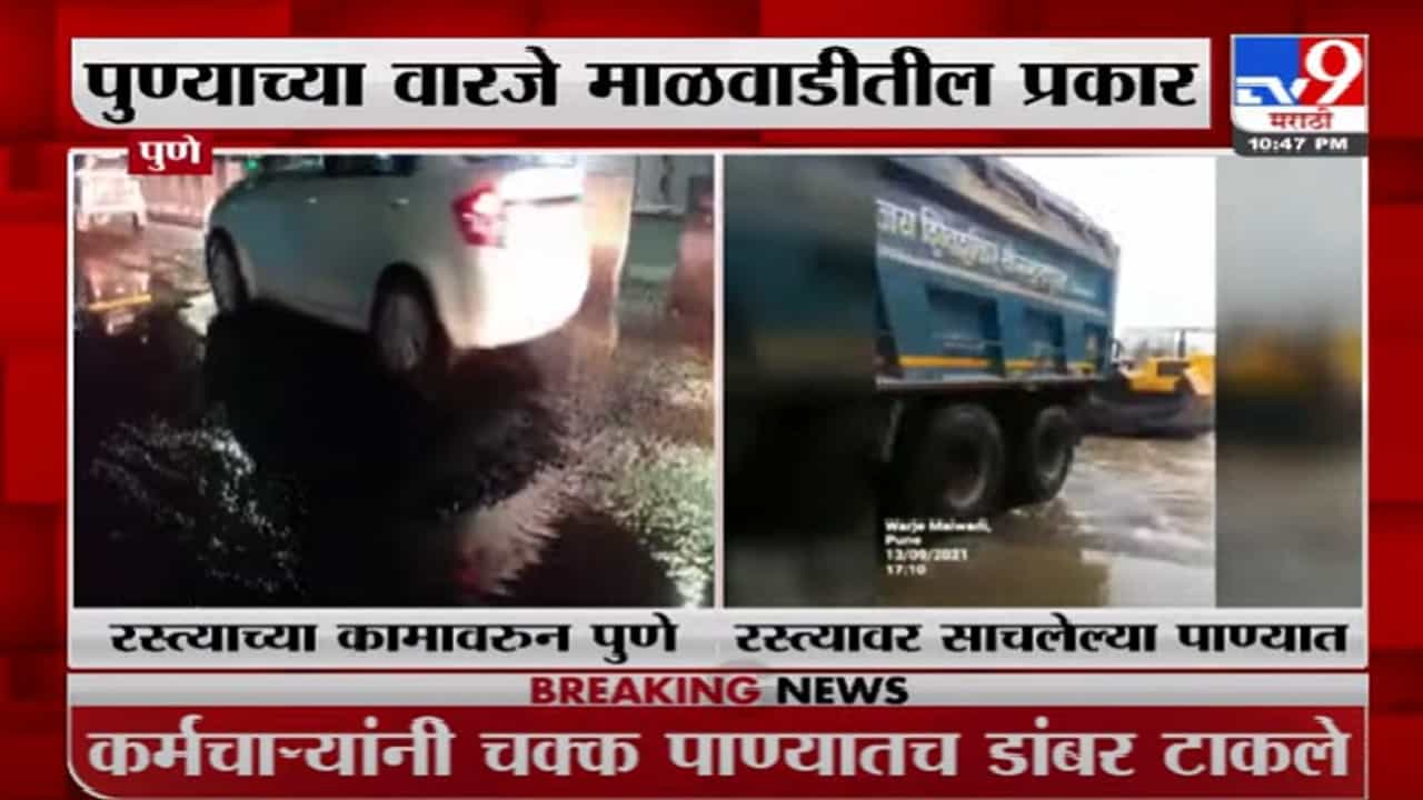 Video : तुंबलेल्या पाण्यात डांबर टाकून रस्ता बनविला, पुणे महापालिकेचा अजब कारनामा, सगळीकडून टीकेची झोड