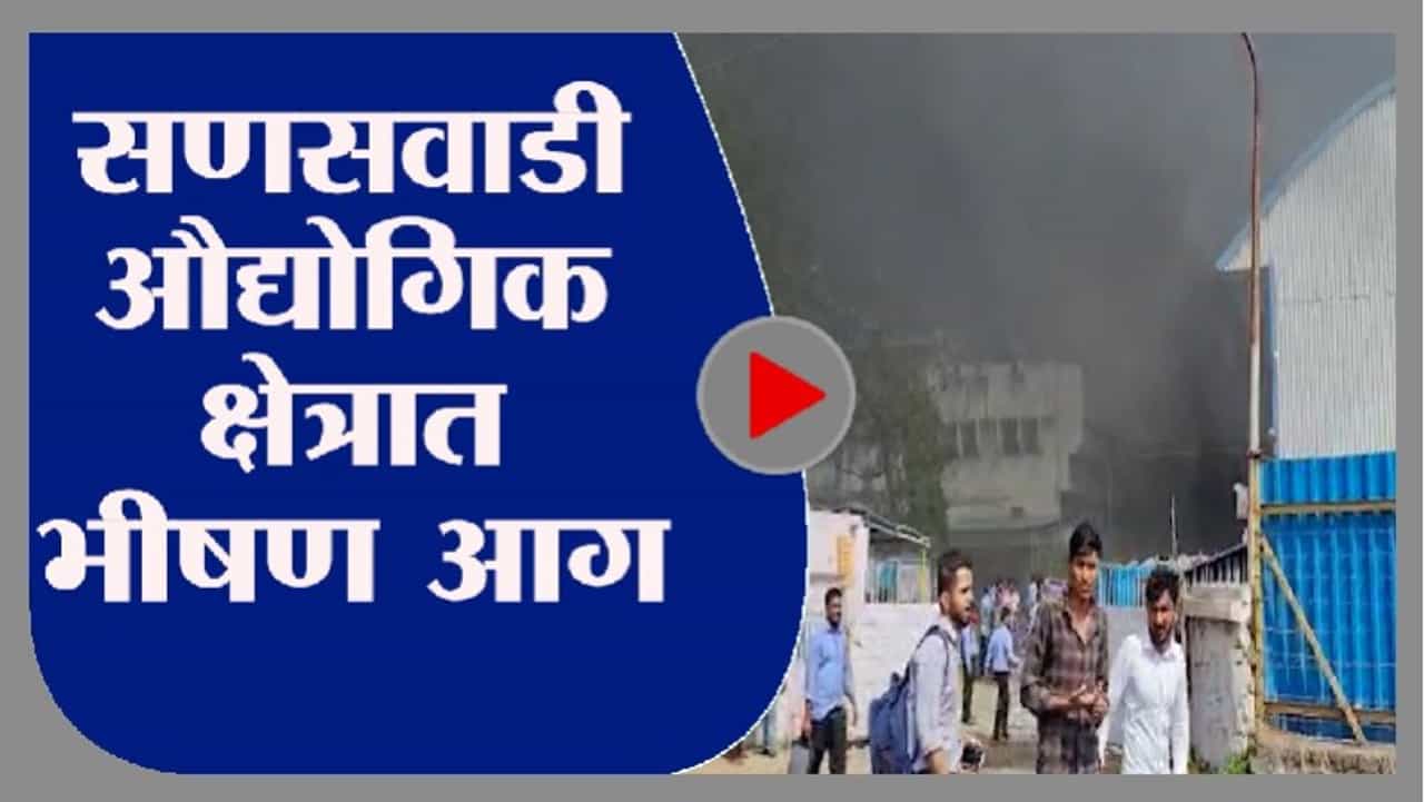 पुण्याच्या सणसवाडी MIDC तील फायबर मोल्डिंग कंपनीला भीषण आग लागलीये. प्रचंड धुराचे लोट पाहायला मिळत आहेत. | Pune Sanaswadi MIDC