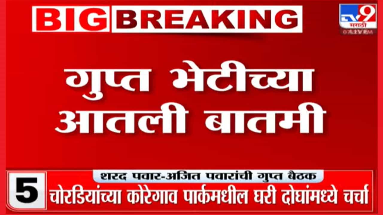 अजित पवार आणि शरद पवार एवढंच नाही तर जयंत पाटील हे देखील टीव्ही ९ च्या कॅमऱ्यातून सुटू शकले नाहीत. या नेत्यांची भेट ही कॅमेऱ्यात कैद झाली आहे, भेट घेतल्यानंतर कोण कसे बाहेर पडले हे देखील यात कैद झाले आहे. उद्योजक अतुल चोरडिया यांच्या पुण्यातील घरी झालेल्या भेटी मागचं कारण देखील समोर येत आहे.