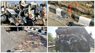 नऱ्हे येथील अपघाताची पाहणी करण्यासाठी घटनास्थळी जात असताना भरधाव कंटनेरने सिंहगड पोलिसांच्या गाडीला उडविले. यामध्ये पोलिसांच्या गाडीचा चक्काचूर झाला असून ग्रामीण पोलीस दलातील दोन कर्मचारी गंभीर जखमी झाले (Series Of Accidents In Pune).