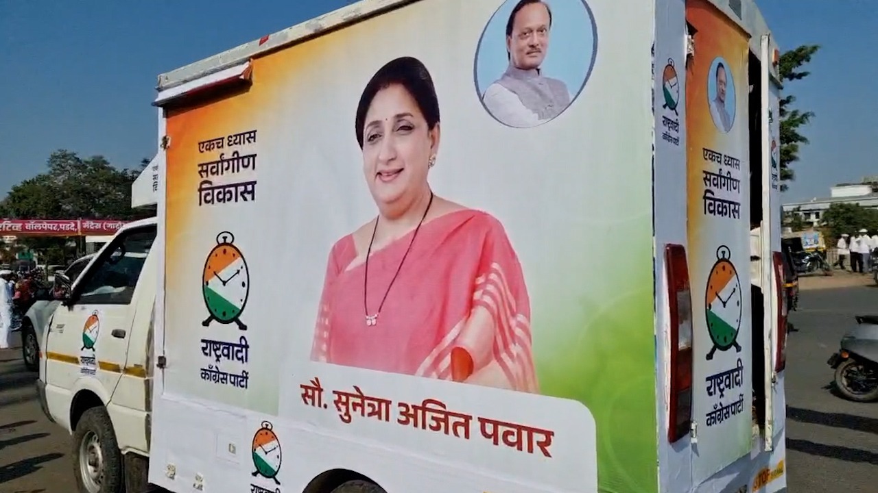 बारामती लोकसभा मतदार संघात सुनेत्रा अजित पवार यांची उमेदवारी जवळपास निश्चित झाल्याचे संकेत मिळत आहे. बारामतीमध्ये केवळ अधिकृत घोषणा बाकी आहे. बारामती परिसरात सुनेत्रा पवार यांच्या माहिती व कार्याचा आढावा घेणारा प्रचार रथ फिरू लागला आहे. त्यासाठी गाडीवर फ्लॅक्स लावले आहे. त्यात सुनेत्रा पवार यांचा मोठा फोटो घेतला आहे. तसेच अजित पवार यांचाही फोटो आहे.