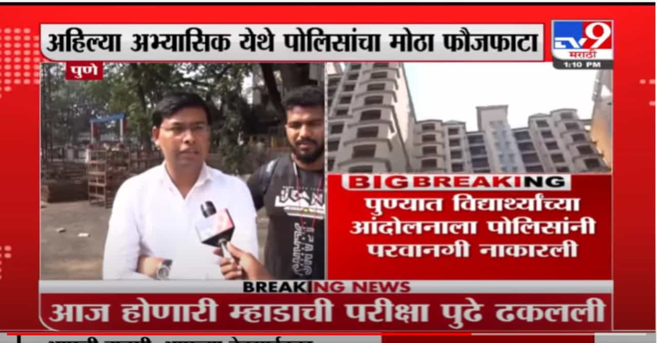 म्हाडाची परीक्षा रद्द झाल्यानंतर अनेक विद्यार्थ्यांनी आंदोलनाचा पवित्र घेतला. शास्त्री रोड विदयार्थ्यांना आंदोलन करण्यास मज्जाव केला. त्याठिकाणी मोठी पोलीस बंदोबस्त तैनात करण्यात आला होता. अहिल्या अभ्यासिकेच्या बाहेरमोठा पोलीस बंदोबस्त ठेवण्यात आला होता. यावेळी विद्यार्थ्यांना सरकारकडे नुकसान भरपाईची मागणी केली आहे. तसेच परीक्षांचा सातत्याने होत असलेला गोंधळ लक्षात घेता,सर्व परीक्षा या एमपीएससीच्या मार्फतच घ्याव्यात अशी मागणी विद्यार्थ्यांनी यावेळी केली.