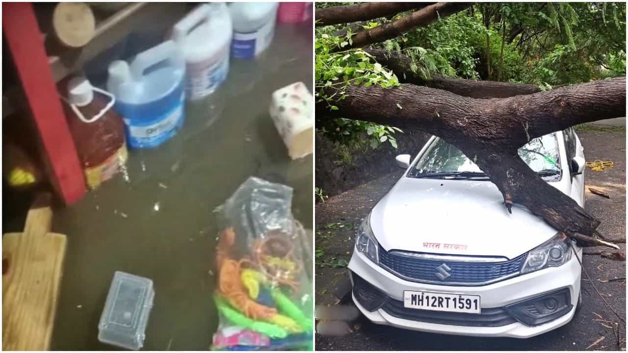 पुणे : पुणे शहरात झालेल्या मुसळधार पावसामुळे (Heavy rain) अनेक ठिकाणी पाणी साचण्याच्या घटना घडल्या आहेत. काल पुण्यात मुसळधार पाऊस झाला. संध्याकाळच्या वेळी दाट ढग दाटून आले. त्यानंतर झालेल्या पावसाने पुणेकरांना झोडपले. यामुळे नागरिकांची तारांबळ उडाली, गैरसोय झाली. कारण पावसानंतर मोठ्या प्रमाणात ठिकठिकाणी पाणी साचले त्याचबरोबर वाहतूककोंडीलाही (Traffic jam) सामोरे जावे लागले. काही ठिकाणी तर अक्षरश: दुचाकीदेखील वाहून गेल्याचे प्रकार घडले. पाषाण, पंचवटी, स्टेट बँक नगर येथे पहाटे दोन चारचाकी वाहनांवर झाड (Tree collapsed) कोसळले. अग्निशामन दलाचे जवान घटनास्थळी पोहोचले आणि हे झाड बाजूला करण्यात आले. सुदैवाने या दुर्घटनेत कोणीही जखमी झाले नाही. तिकडे हडपसरमधील भाजी मंडईत पाणीच पाणी झालेले पाहायला मिळाले. गुडघाभर पाणी साचल्याने मंत्री मार्केटमधील विक्रेत्यांचे हाल झाले.