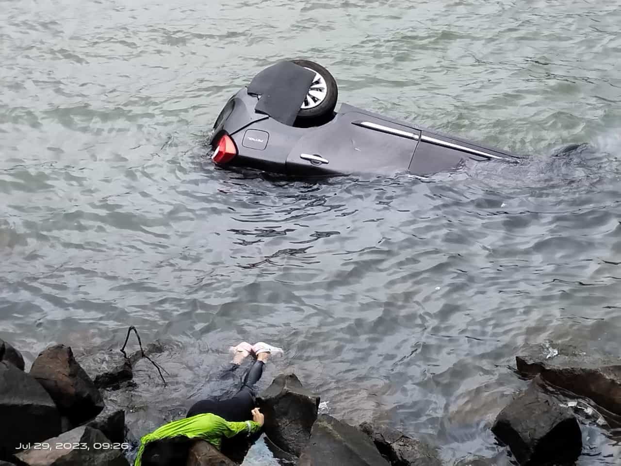 कार पाण्यात कोसळली