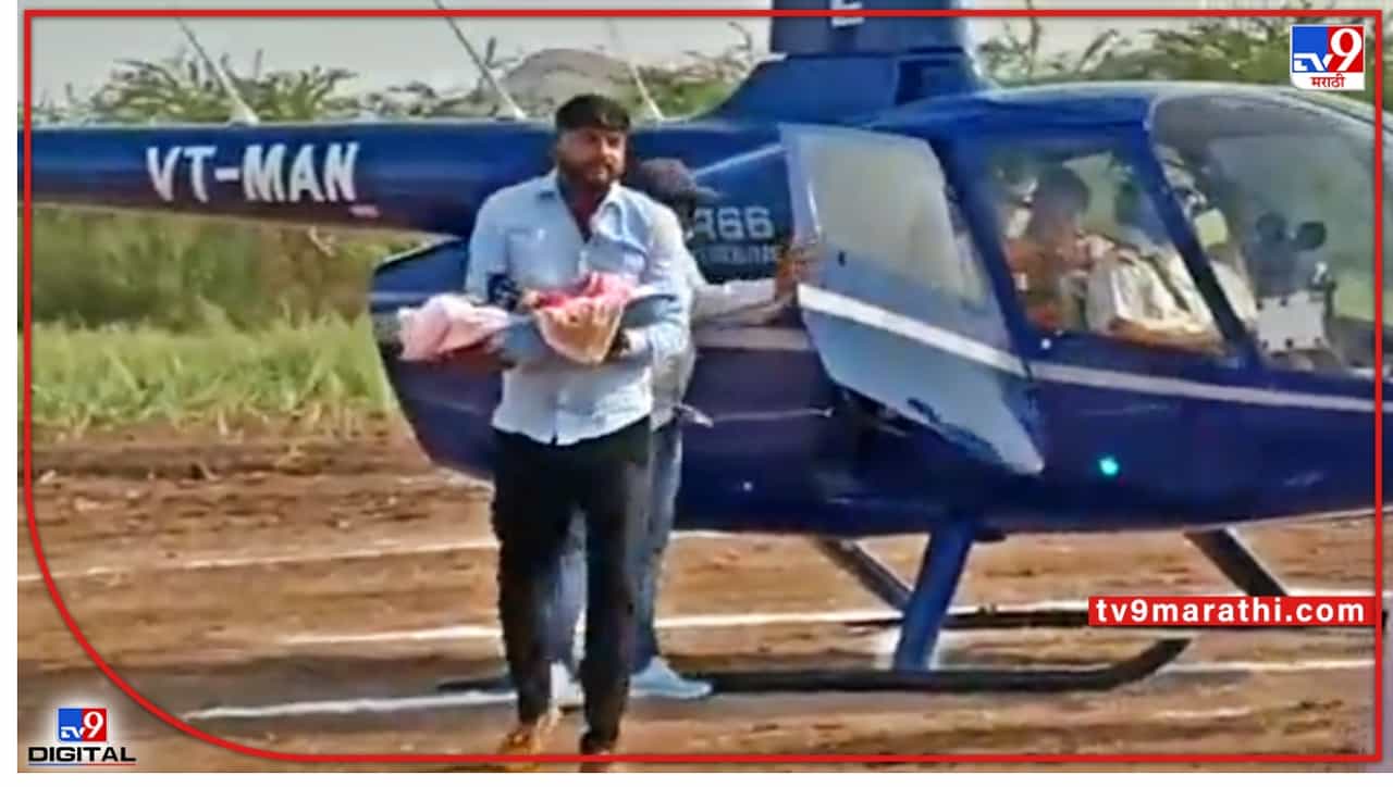 पुणे जिल्ह्याच्या खेड तालुक्यातील शेल पिंपळगाव (Shel Pimpalgaon) येथे मुलीच्या जन्माचे (Birth of a girl) अनोख्या पद्धतीने स्वागत (Welcome) करण्यात आले आहे. जन्मानंतर मुलीला चक्क हेलिकॉप्टर सफारी करत घरी आणण्यात आले आहे.