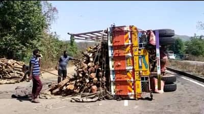 कोकणातील खेड येथून ठाणे मुलुंड स्मशानभूमीसाठी अशोक लेलँड कंपनीचा ट्रक लाकडे घेऊन चालला होता. पनवेल जवळील मुंबई गोवा महामार्गावरील कर्नाळाच्या हद्दीत पहाटे पनवेल बाजूकडे भरधाव वेगाने जात असताना ट्रकमधून ऑइल गळती होऊ लागली. यामुळे ट्रकवरील चालकाचा ताबा सुटून ट्रक रस्त्याच्या उजव्या बाजूला पलटी झाला. ट्रक पलटल्यानंतर सर्व लाकडे रस्त्यावर पसरली. रस्त्यावर ट्रक पलटी झाल्याने आणि लाकडं पसरल्याने मोठी वाहतूक कोंडी झाली. पनवेल पोलीस आणि वाहतूक पोलिसांनी तात्काळ घटनास्थळी धाव घेत वाहतूक सुरळीत केली.