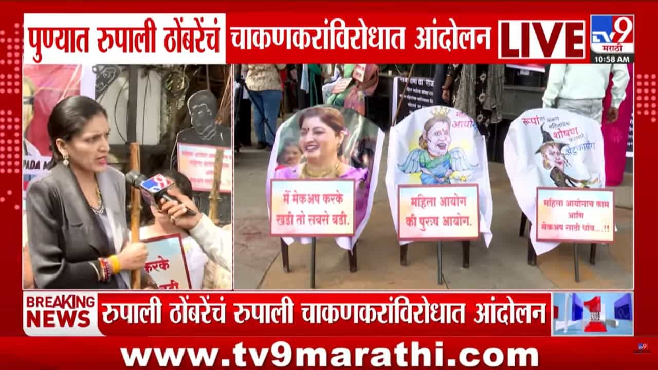 महिला आयोगाचे काम मेकअपसाठी थांब…; चाकणकरांच्या राजीनाम्यासाठी पुण्यात तीव्र आंदोलन, रुपाली ठोंबरे आक्रमक