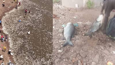 सांगली : काल दुपारी कृष्णा नदीच्या (Krushna river) पात्रात मेलेल्या माशांचा (Fish Death) खच आढळल्याने सांगली शहरात (Sangli)मोठी खळबळ माजली आहे. ते पाणी पिण्यासाठी तरी योग्य आहे का ? असा प्रश्न नागरिकांना पडू लागला आहे. काल दुपारी उन्हाच्या तडाख्यात मासे मृत्यूमुखी पडल्याचे पाहून अनेकांच्या पायाखालची जमीन सरकली आहे. नागरिकांचं आरोग्य नदीच्या पाण्यामुळे धोक्यात असल्याचं अनेकांनी बोलून दाखवलं आहे. काल दुपारी काही मासे तडफडून मरत होते. त्यावेळी घटनास्थळी बघ्यांची अधिक गर्दी झाली होती. त्यावेळी काही नागरिक पाण्यात उतरले आणि तडफडणारे मासे ताब्यात घेतले. या प्रकरणी प्रशासन कुणावर कारवाई करणार याकडे सगळ्यांचं लक्ष लागलं होतं.