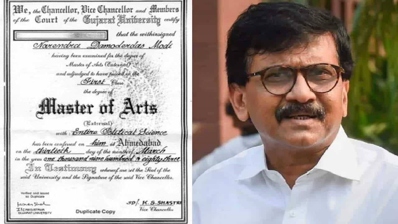 पंतप्रधान नरेंद्र मोदी यांचं नाव; डिग्रीचा ‘हा’ फोटो, संसदभवनात मेनगेटवर लावा, संजय राऊतांचं ट्विट चर्चेत