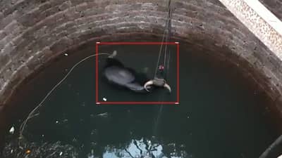या जंगली गव्याच्या तोंडात पाण्याच्या मोटारीच्या दोऱ्या अडकल्या आहेत. त्याचे वजन जास्त असल्याने त्याला क्रेनच्या मदतीशिवाय बाहेर काढणे अशक्य आहे. दरम्यान हा गवा विहिरीत नेमका कसा पडला, याची अद्याप कोणतीही माहिती समोर आलेली नाही.