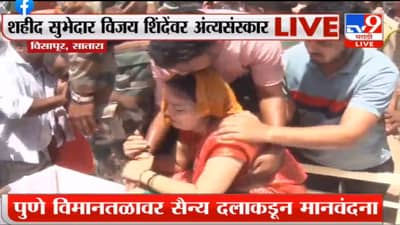 लडाखमध्ये झालेल्या अपघातामध्ये सात जवानांचा मृत्यू झाला आहे. त्यामध्ये विसापूर खटाव येथील सुभेदार विजय सर्जेराव शिंदे यांचा समावेश आहे. देशसेवा बजावत असताना त्यांना वीरमरण आले. या घटनेमुळे खटाव तालुका दुखामध्ये बुडाला आहे. आपल्या पतीचे निधन झाल्याची बातमी समजल्यापासून विजय शिंदे यांच्या पत्नी स्वत: सावरू शकत नाहीयेत. बापाचा चेहरा मुलांना पाहुद्या म्हणत पत्नीने परत एकदा टाहो फोडला. शहीद जवान शिंदे यांना अखेरचा निरोप देण्यासाठी हजारोंचा जनसमुदाय यावेळी उपस्थित होता. फुलांचा वर्षाव करत शहीद शिंदे यांना गावकऱ्यानी निरोप दिलाय. यावेळी जिल्ह्यातील अनेक लोकप्रतिनिधींनी शहीद जवानांच्या पार्थिवाचे दर्शन घेतले.