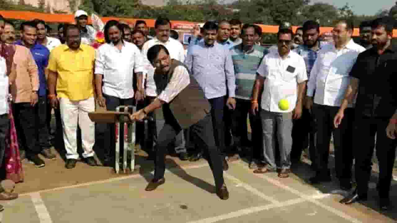महाराष्ट्र दौऱ्यावर निघालेल्या संजय राऊत यांची राजकीय फटकेबाजी सुरू होण्यापूर्वीच क्रिकेटच्या मैदानावरील फटकेबाजी बघायला मिळाली आहे.
