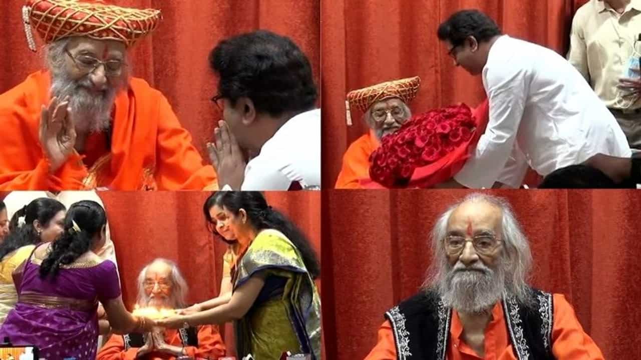 राज ठाकरे यांनी सर्वप्रथम शिवशाहीरांचा सन्मान केला. गुलाबपुष्प आणि पगडी घालून शिवशाहीरांप्रति त्यांनी कृतज्ञता व्यक्त केली. तसंच त्यांना वाढदिवसाच्या शुभेच्छा देत त्यांच्या पायावर डोकं ठेऊन त्यांचे आशीर्वादही घेतले.