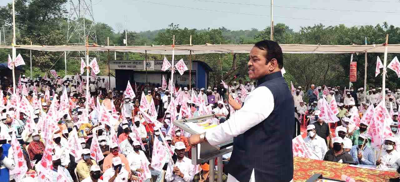 यावेळी खासदार सुनील तटकरे यांनीही केंद्र सरकारवर जोरदार टीका केली. केंद्राने शिवरायांच्या भूमीतील भूमिपुत्रांशी पंगा घेऊ नये, असा इशारा देतानाच राज्यात महाविकास आघाडीचं सरकार असून आम्ही कामगारविरोधी कोणताही निर्णय केंद्र सरकारला घेऊ देणार नाही, असा इशाराही तटकरे यांनी दिला.