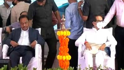 मुख्यमंत्री उद्धव ठाकरे आणि केंद्रीय मंत्री नारायण राणे यांच्यातली टशन चिपी विमानतळावरही दिसली. विमानतळाच्या कोनशिलेच्या अनावरप्रसंगी उद्धव ठाकरे, नारायण राणे, अजित पवार, बाळासाहेब थोरात आणि इतरही मंत्री उपस्थित होते.