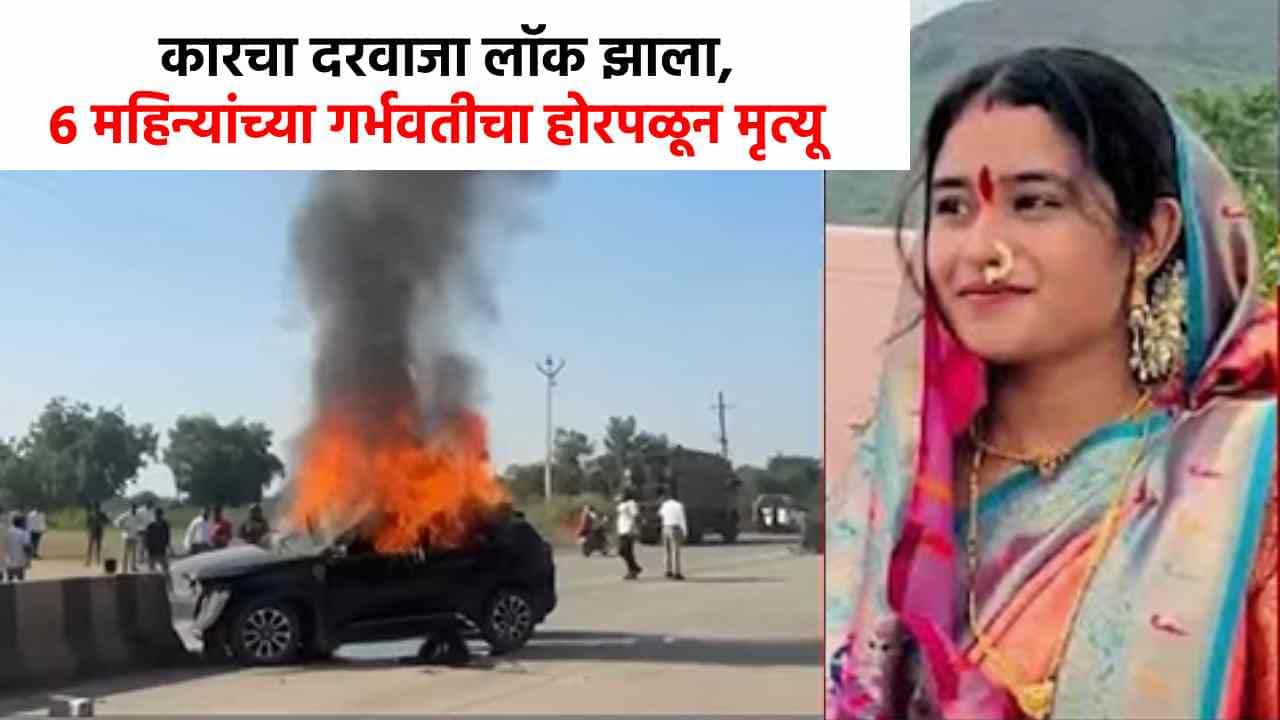 Jalgaon Car Accident : कारमध्ये बसून आरामात प्रवास करणे प्रत्येकालाच आवडते. विशेष म्हणजे आजारी व्यक्ती, वृद्ध महिला किंवा पुरुष यासह गर्भवती महिलांसाठी कारमधील प्रवास हा सोईचा आणि सुखकर मानला जातो. हाच कारचा प्रवास मात्र एका सहा महिन्यांच्या गर्भवतीच्या जीवावर बेतला आहे. जळगाव जिल्ह्यात एक काराने दुभाजकाला धडक दिली. त्यानंतर आग लागली. याच आगीत सहा महिन्यांच्या गर्भवती महिलेचा होरपळून मृत्यू झाला आहे. या घटनेनंतर सर्वत्र हळहळ व्यक्त केली जात आहे. गाडीचे सगळेच दरवाजे लॉक झाल्याने हा दुर्दैवी प्रसंग घडला आहे.