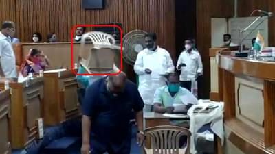 सोलापूर महापालिकेत आयुक्त पी.शिवशंकर आणि महापौर शोभा बनहट्टी यांच्या उपस्थितीत पालिकेची सभा सुरु होती. यासभेतील विषय ऐनवेळी बदलण्यात आल्याने संतप्त झालेल्या भाजप नगरसेवकानं खुर्ची भिरकावली. सुरेश पाटील असं खुर्ची भिरकवणाऱ्या नगरसेवकाचे नाव आहे. सुरेश पाटील हे भाजपचे नगरसेवक असून पालिकेच्या सर्वसाधारण सभेत विषय बदलण्यात आल्यानं खुर्ची भिरकवल्याचे त्यांनी सांगितलं. (Solapur Municipal Corporation Meeting turmoil)