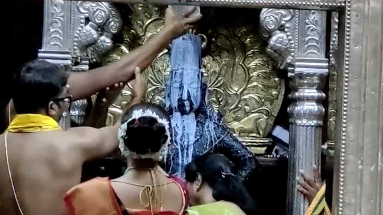 नित्यपूजा सुरू असताना देवाच्या मूर्तीवर केशर पाण्याने स्नान घालण्याची संधी भाविकांना दिली जाते. हळद, कुंकू लावून देवाला पेढे आणि फळांचा महाप्रसाद दाखवला जातो.
