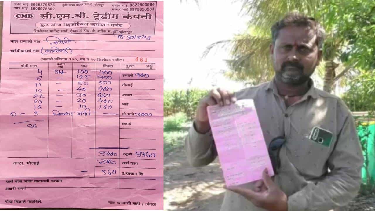 उत्पादन झाल्यानंतर त्यांनी यातील तीन टन कलिंगड विक्रीसाठी सोलापूर बाजार समितीत आणले होते. हे तीन टन कलिंगड काढण्यासाठी मजुरी अडीच हजार रुपये, गाडी भाडे 4 हजार 500 रुपये, हमाली 960 रुपये, असा एकूण 7 हजार 960 रुपये खर्च आला.