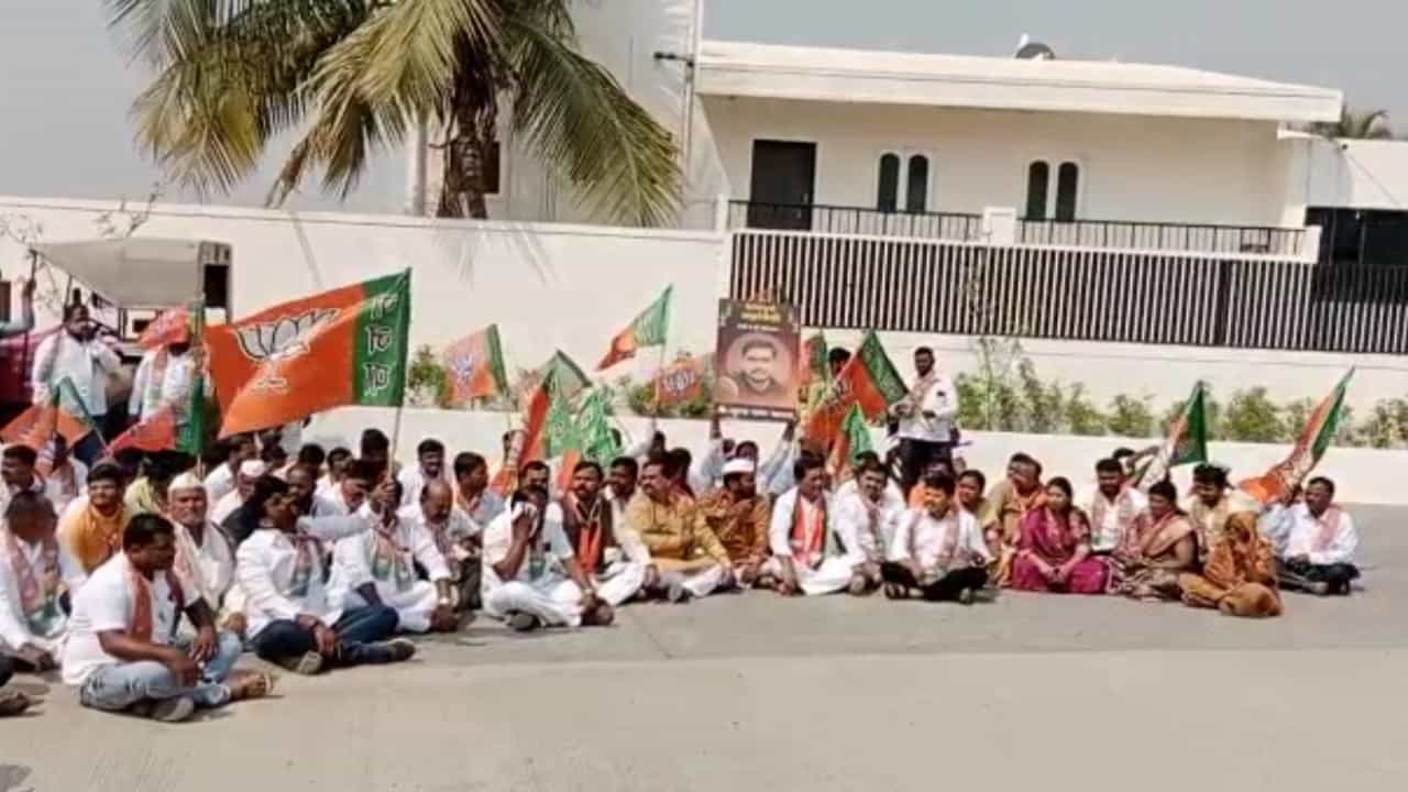 सोलापूर- वीजतोडणी प्रश्नावरून सध्या महाराष्ट्रात शेतकरी आक्रमक झाले असताना, इंदापूरचे राष्ट्रवादीचे आमदार व राज्यमंत्री दत्तात्रय भरणे (Minister of State Dattatraya Bharne)यांच्या इंदापूर तालुक्यातील भरणेवाडी येथील घरासमोर सोलापूर जिल्ह्याचे भाजपचे(BJP) जिल्हाध्यक्ष श्रीकांत देशमुख यांनी आपल्या कार्यकर्त्यांसह आज निषेध आंदोलन केले. वीजतोडणी (Power outage) प्रश्नावरून महाराष्ट्रात सर्वत्र आंदोलन होत असताना पहिल्यांदाच यावेळी मंत्र्याच्या घरासमोर आंदोलन झाले आहे.. आंदोलकांनी यावेळी महाविकास आघाडी सरकार व राज्यमंत्री दत्तात्रय भरणे यांच्या विरोधात घोषणाबाजी केली.