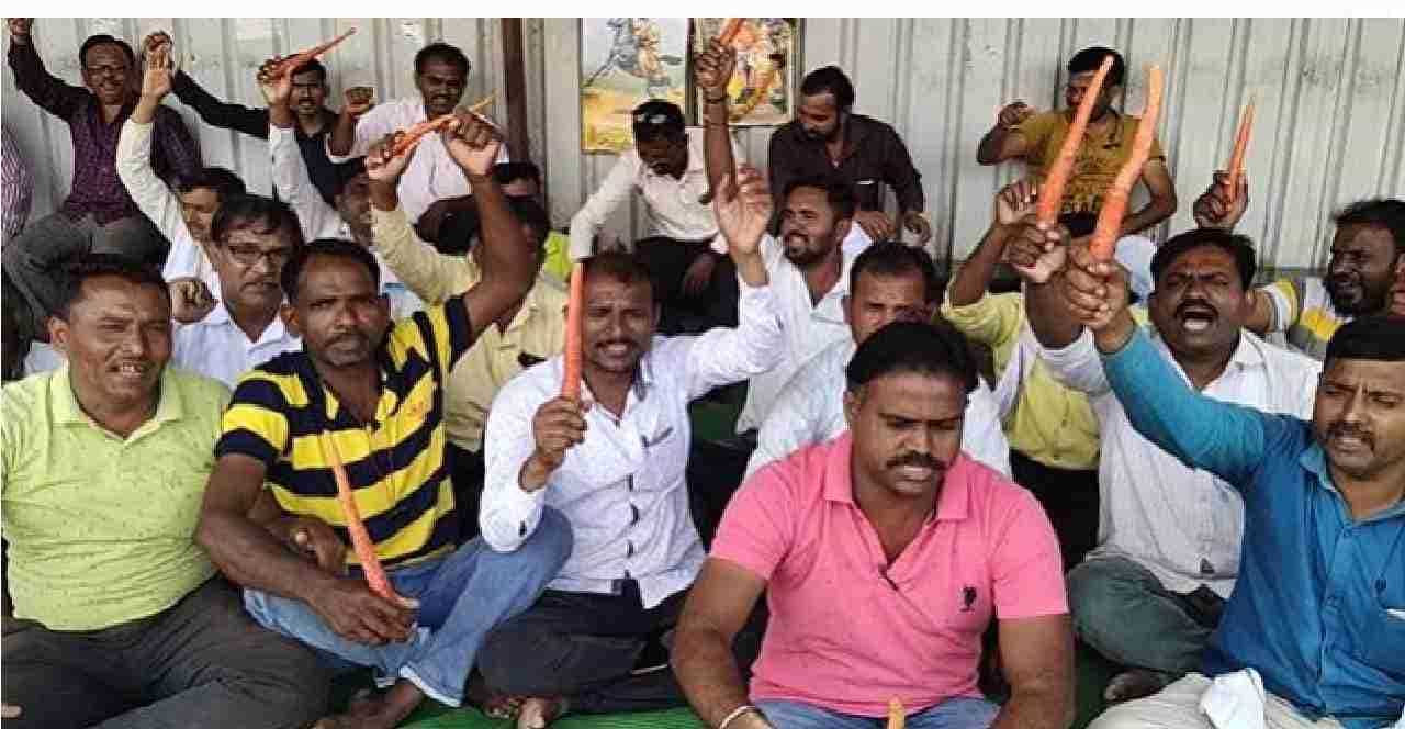 हिंगोलीत एसटी कर्मचाऱ्यांची गाजर दाखवून निदर्शनं, परिवहनमंत्र्यांना पदावरून हटवण्याची मागणी