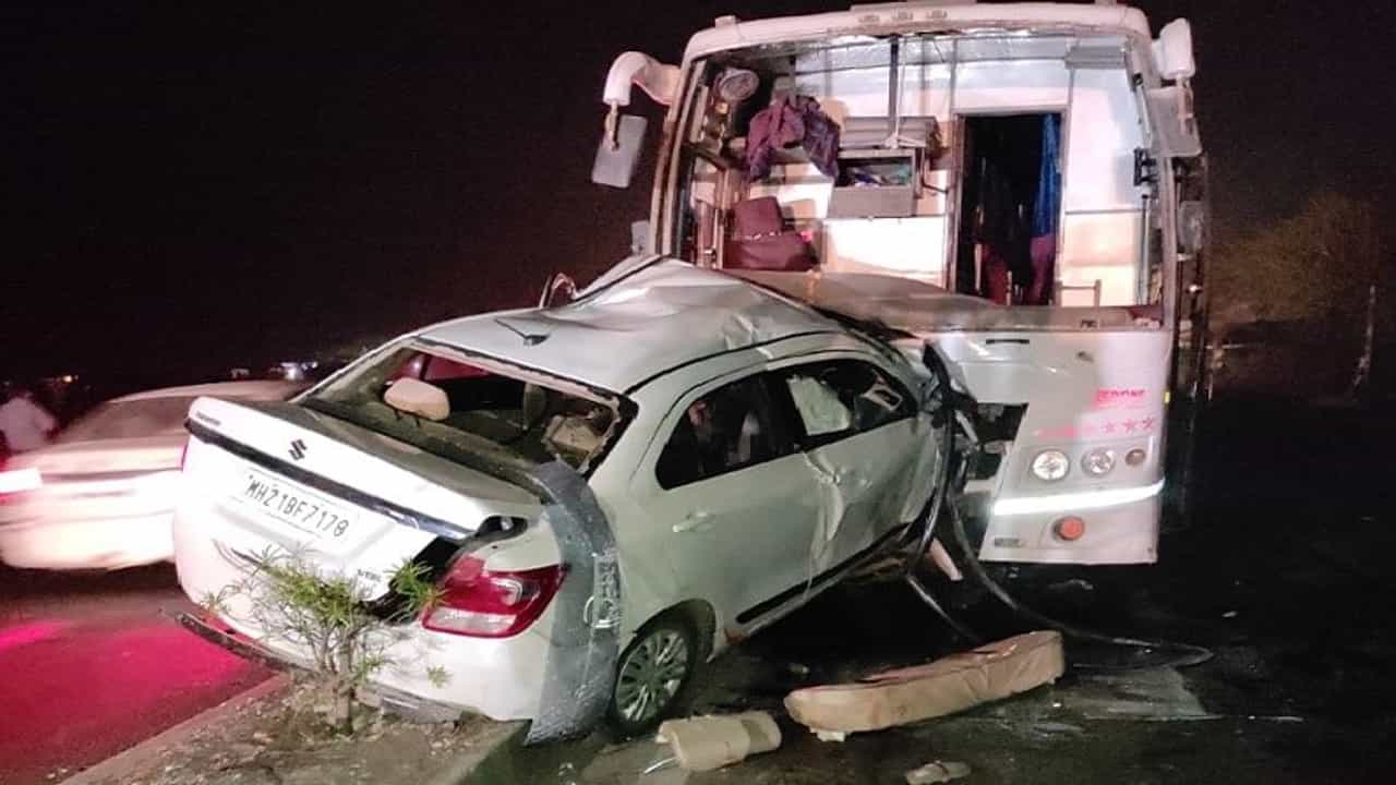 (Swift Car Luxury Bus Accident kills five in Ahmednagar)