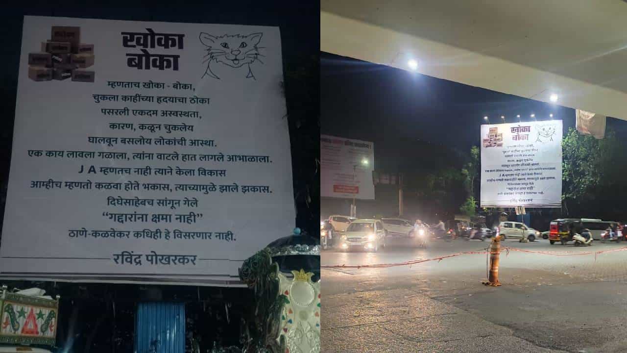 ठाण्यात गेल्या काही दिवसांपासून बॅनर्स वॉर सुरू आहे. ठाण्यातील कळवा परिसरात कळवेकारांकडून बॅनरबाजी पाहायला मिळत आहे. 29 जानेवारी रोजी लावण्यात आलेल्या या खोकेबोके बॅनरला प्रतिउत्तर देण्यात आले आहे.