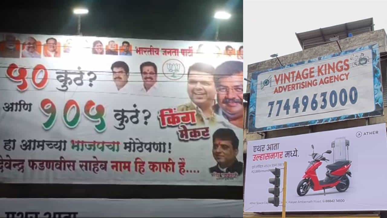 50 कुठं आणि 105 कुठं?... असा मजकूर लिहिलेला भाजपचा बॅनरच चोरीला गेला आहे. उल्हासनगरात हा बॅनर लावण्यात आला होता. शिंदे गटाला डिवचणारा हा बॅनर चोरीला गेल्याने उलटसुलट चर्चांना उधाण आलं आहे.