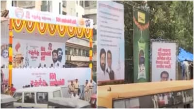 मी शिवसेनेची काँग्रेस होऊ देणार नाही, मतदानाच्या वेळी शिव्या द्यायच्या आणि निवडणुकीनंतर त्यांच्याबरोबरच आघाडी करायची, अशाप्रकारचे पोस्टर्स दहीहंडीच्या ठिकाणी पाहायला मिळत आहेत. या दहीहंडीच्या उत्सवाला आता सुरुवात झाली आहे. विविध गोविंदा पथके सहभागी होत आहेत. मानाची दहीहंडी फोडण्यासाठी चढाओढ लागलेली पाहायला मिळणार आहे. मोठे स्टेज याठिकाणी उभारण्यात आले आहे. गोविंदा पथकांसह सामान्य नागरिकांची गर्दी याठिकाणी दिसून येत आहे.