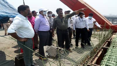 वाहतुकीच्या दृष्टीने महत्वपूर्ण असणाऱ्या कळवा खाडी नवीन पूलाचीही महापालिका आयुक्त डॉ. शर्मा यांनी पाहणी करून सद्यस्थितीतील कामाचा वेग वाढवून मे महिना अखेर पूलाची एक लेन कार्यान्वित करण्याच्या दृष्टीने नियोजन करण्याच्या सूचनाही त्यांनी दिल्या. या पाहणी दौऱ्यास अतिरिक्त आयुक्त (1) संदीप माळवी, नगर अभियंता प्रशांत सोनग्रा, उप आयुक्त मारुती खोडके, उप आयुक्त अशोक बुरपल्ले, उप आयुक्त मनीष जोशी, अतिरिक्त नगर अभियंता अर्जुन अहिरे, उपनगर अभियंता विनोद गुप्ता, सहाय्यक आयुक्त समीर जाधव, कार्यकारी अभियंता मोहन कलाल, मनोज तायडे, धनाजी मोदे, विकास ढोले, महेश अमृतकर, वरिष्ठ उद्यान अधिक्षक केदार पाटील, आगर व्यवस्थापक दिलीप कानडे तसेच इतर महापालिका अधिकारी आदी उपस्थित होते. (Inspection of works in Kharegaon, Kalwa area and Kalwa creek bridge work by the Commissioner)